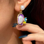 گوشواره مینا کاری طیف رنگی بنفش
